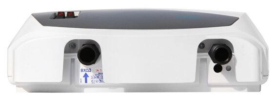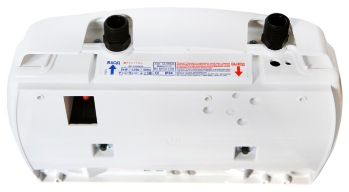 производительность 3 л/мин; максимальная температура воды 65 °С; потребляемая мощность 5 кВт (220 В); Размеры (ШxВxГ) 308x263x98