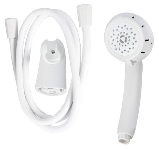 производительность 4 л/мин; максимальная температура воды 65 °С; потребляемая мощность 7 кВт (220 / 380 В); Размеры (ШxВxГ) 300x185x110 мм; в комплекте кран, душевая насадка, шланг; горизонтальный монтаж на стену с нижней подводкой (½'); для одной водоразборной точки; механическое управление; системы защиты: от перегрева, работы без воды; функции: индикатор включения