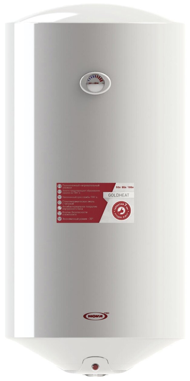 объем бака: 80 л; потребляемая мощность: 1600 Вт (220 В); полезная мощность: 1.6 кВт; максимальная температура воды: 77 °С; покрытие бака: эмаль; установка: вертикальная на стену с нижней подводкой; управление: механическое; индикация: включения