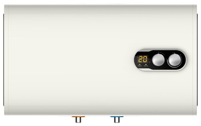 объем бака 50 л; максимальная температура воды 75 °С; потребляемая мощность 2.50 кВт (220 В); покрытие бака: нерж.сталь; горизонтальный монтаж на стену с нижней подводкой; электронное управление; магниевый анод (1 шт.); системы защиты: УЗО, от перегрева, работы без воды; функции: дисплей, индикатор включения, индикатор нагрева, термометр, ограничение температуры нагрева