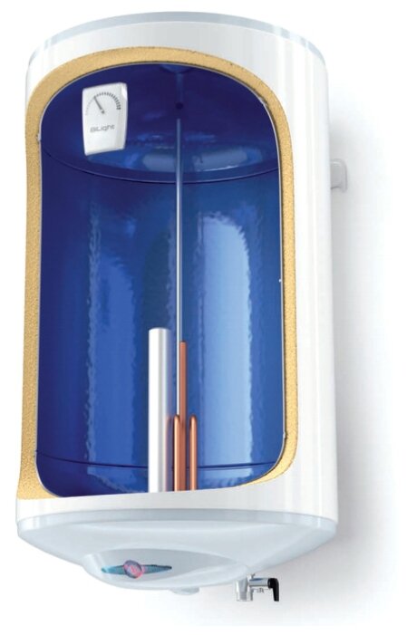 объем бака 100 л; максимальная температура воды 75 °С; потребляемая мощность 2 кВт (220 В); Размеры (ШxВxГ) 467x985x440 мм; покрытие бака: стеклокерамика; вертикальный монтаж на стену с нижней подводкой (¾'); механическое управление