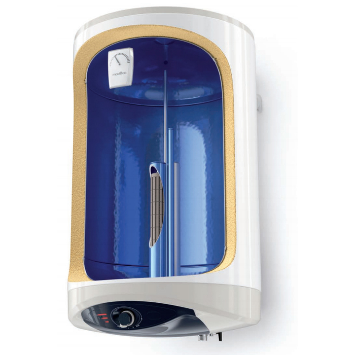 мм; покрытие бака: стеклокерамика; вертикальный монтаж на стену с нижней подводкой; механическое управление; магниевый анод (1 шт.); системы защиты: от перегрева, обратный клапан, предохранительный клапан; функции: индикатор включения, индикатор нагрева, термометр, ограничение температуры нагрева
