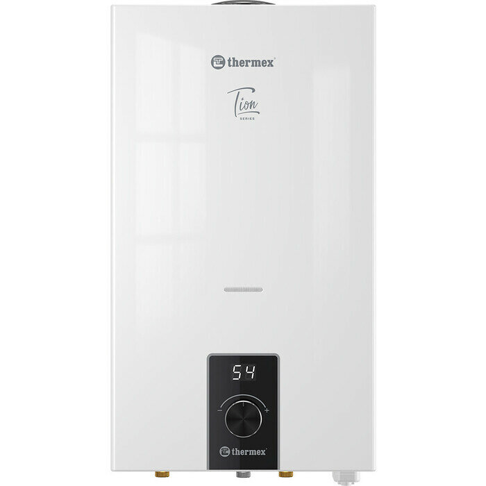 Оригинальная серия газовых колонок Thermex Tion радует не только новой конструкцией, но также высокой функциональностью. Благодаря увеличенному количеству витков усиленного теплообменника, работе на сжиженном или природном газе, надежному водогазовому узлу и механическому управлению – оборудование отличается удобством и повышенной эффективностью.: Преимущества Thermex Tion:: Надежная конструкция: В серии Tion установлен усиленный теплообменник из высококачественной меди и имеет специальное защитное антикоррозийное покрытие. Структура теплообменника также претерпела изменения: увеличилось количество витков для ускорения теплопередачи и повышения эффективности нагрева колонки.: Высокий контроль и безопасность. Газовая колонка Thermex Tion оснащена сразу двумя газовыми клапанами категории А, которые работают долго, стабильно и помогают контролировать подачу газа. В серии также предусмотрена защита от перегрева, нагрев без протоков и автоматический таймер отключения на 20 минут.: Практичная и удобная эксплуатация