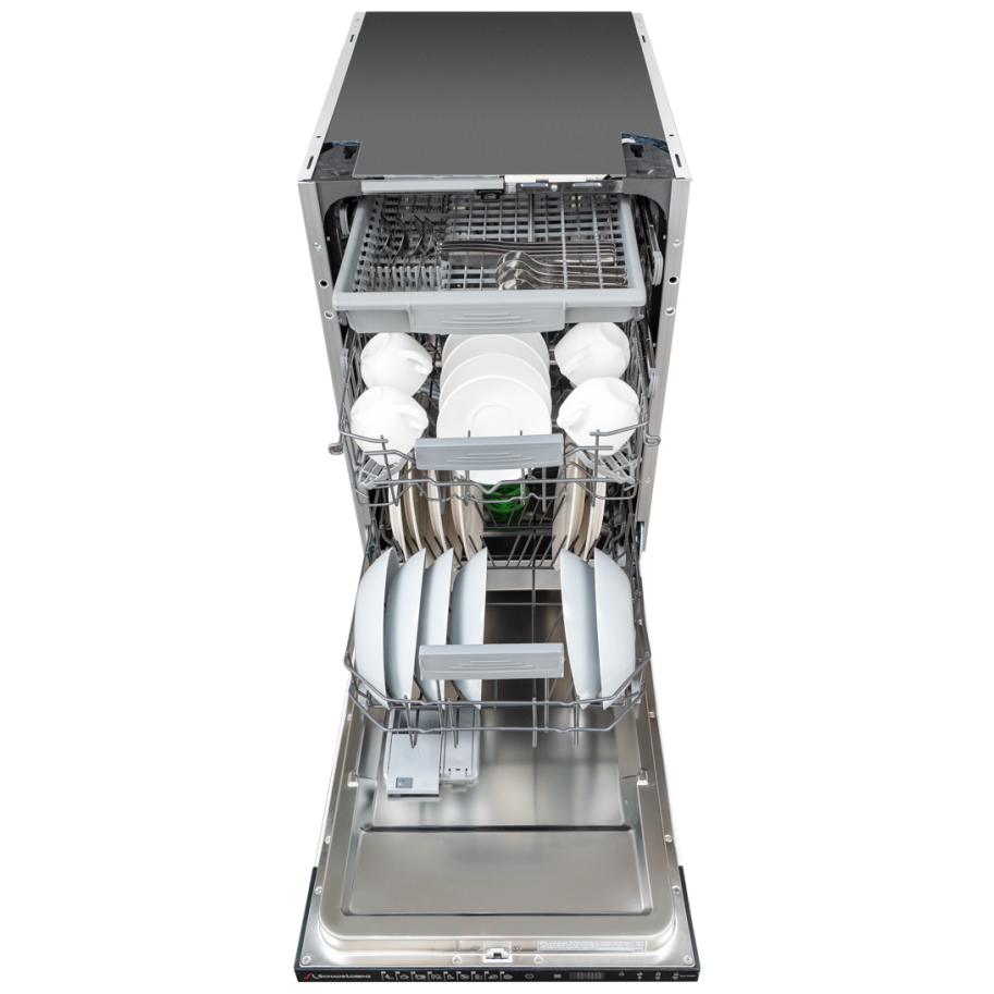 Общие характеристики: Вместимость: 10 комплектов: Тип: узкая: Тип установки: встраиваемая полностью: Класс энергопотребления: A++: Класс мойки: A: Класс сушки: A: Управление: электронное: Инверторный двигатель: да: Высота: 82 см: Ширина: 44.8 см: Глубина: 55 см: Вес: 32 кг: Расход воды: 9 л: Уровень шума при работе: 44 дБ: Программы и режимы мойки: Программы: автоматическая, быстрая, деликатная, интенсивная, режим половинной загрузки, стандартная, экономичная: Количество программ мойки: 9: Количество температурных режимов: 7: Тип сушки: турбосушка: Особенности: Третий уровень загрузки: есть: Особенности конструкции: автоматическое открывание дверцы по завершении цикла, дисплей, использование средств 3 в 1, регулируемая по высоте корзина для посуды, сенсор чистоты воды, таймер отсрочки: Минимальное время отсрочки запуска: 1 ч: Максимальное время отсрочки запуска: 19 ч: Индикация работы: луч на полу: Индикаторы наличия средств: ополаскивателя, соли: Безопасность: защита от протечек: В комплекте: держатель для б