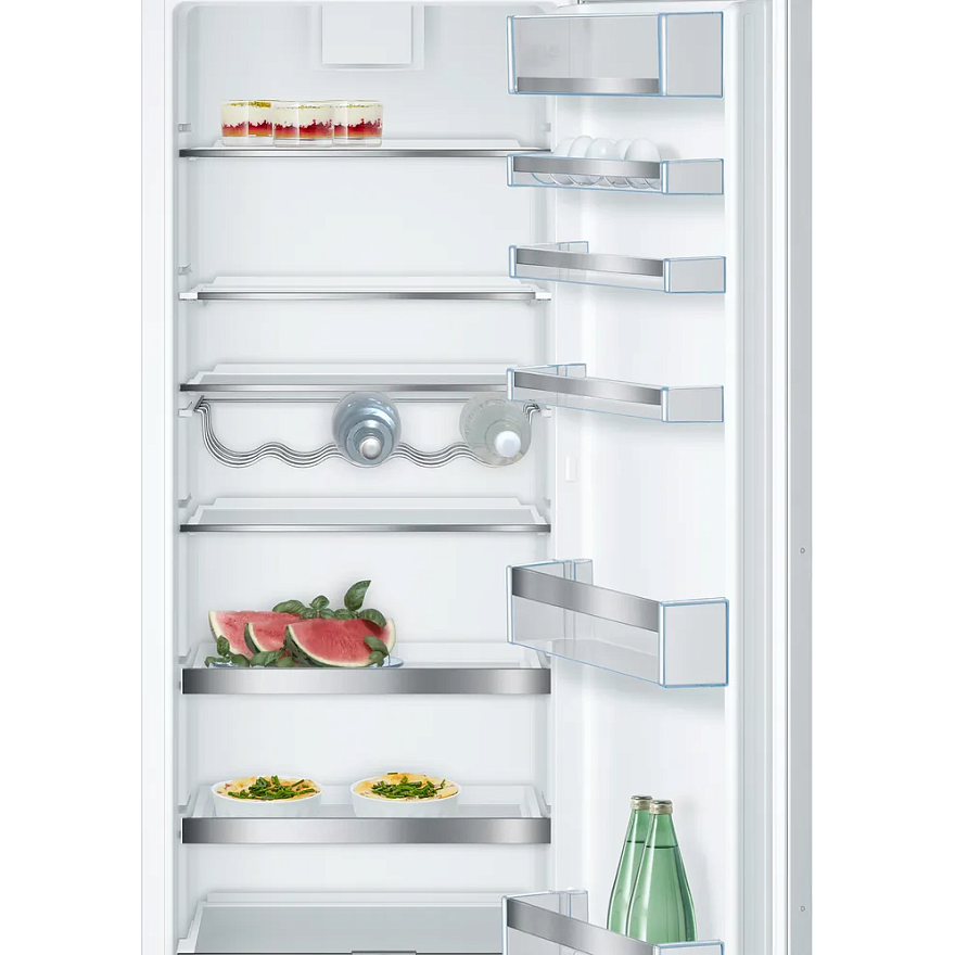 Встраиваемый однокамерный холодильник Bosch KIR81AF30U — это современное устройство, отличающееся продуманным дизайном и функциональностью. Благодаря своему внешнему виду, он легко впишется в любой интерьер. Белый цвет корпуса подчеркивает чистоту и свежесть, а компактные размеры позволяют установить его даже в небольшой кухне. Продуманная конструкция устройства позволяет максимально эффективно использовать пространство. Внутри холодильника находится 7 полок, 6 из которых можно регулировать по высоте, что позволяет удобно разместить продукты различных размеров. Одна полка фиксированная, что обеспечивает дополнительную стабильность при хранении тяжелых продуктов. Все полки изготовлены из высокопрочного стекла, что обеспечивает их долговечность и удобство в использовании. Особенностью этой модели является наличие выдвижного контейнера MultiBox, который идеально подходит для хранения фруктов и овощей. Благодаря специальной системе охлаждения, продукты остаются свежими и сохраняют свои полезные свойства на долгое