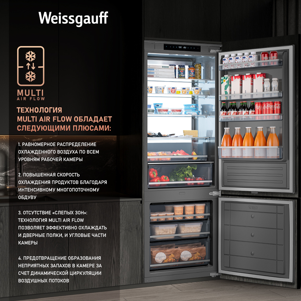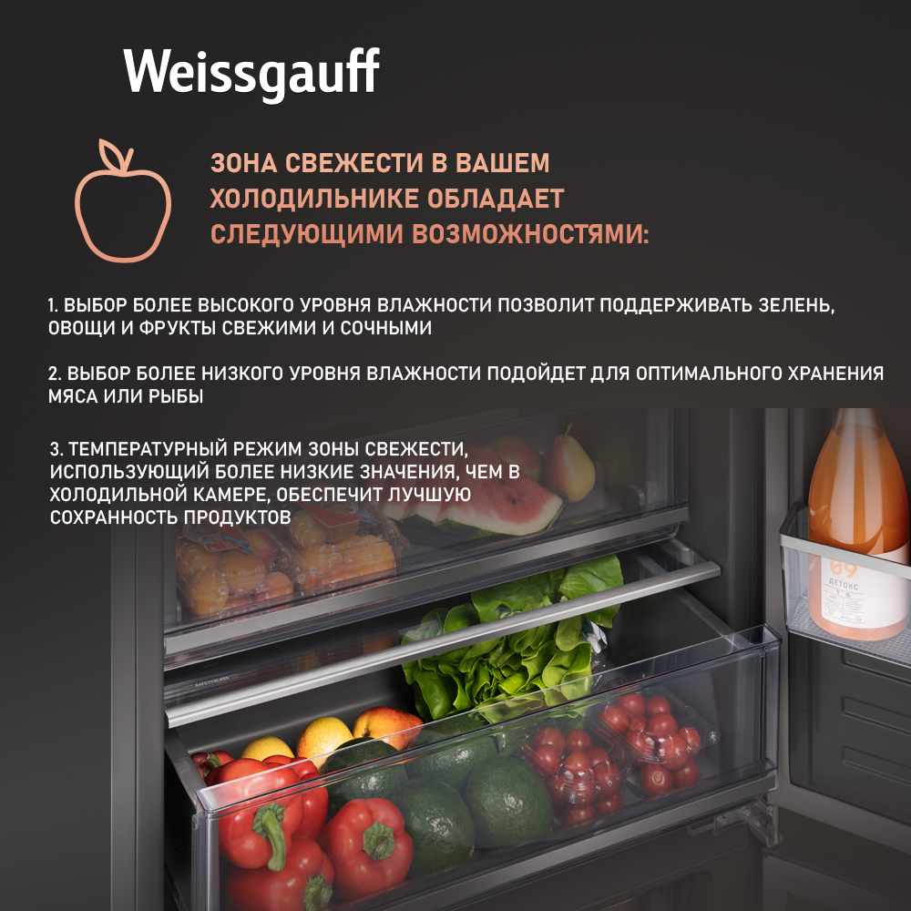 Встраиваемый холодильник с инвертором: : Weissgauff WRKI 1970 Total NoFrost Inverter Premium Ecofresh Inox: : Встраиваемый холодильник от Weissgauff, обладающий инверторным компрессором с гарантией 10 лет, технологиями Multi Air Flow и Metal-Tech Cooling XL, а также полной системой размораживания Full No Frost - это поистине одна из самых передовых и функциональных моделей холодильников, имеющихся на рынке на сегодняшний день! Воплощая в себе соотношение фантастической вместительности, безупречной эргономики внутреннего пространства, технологического совершенства и великолепного внутреннего дизайна - он является одним из безусловных флагманов Weissgauff, способным вывести для вас понимание того, на что способен холодильник, на совершенно новый уровень!: : Серия PREMIUM создана Weissgauff, чтобы удовлетворить самые взыскательные запросы наших наиболее требовательных клиентов. Бесспорно высшее качество, расширенная функциональность и богатая комплектация, улучшенные показатели и доведенный до совершенства дизай