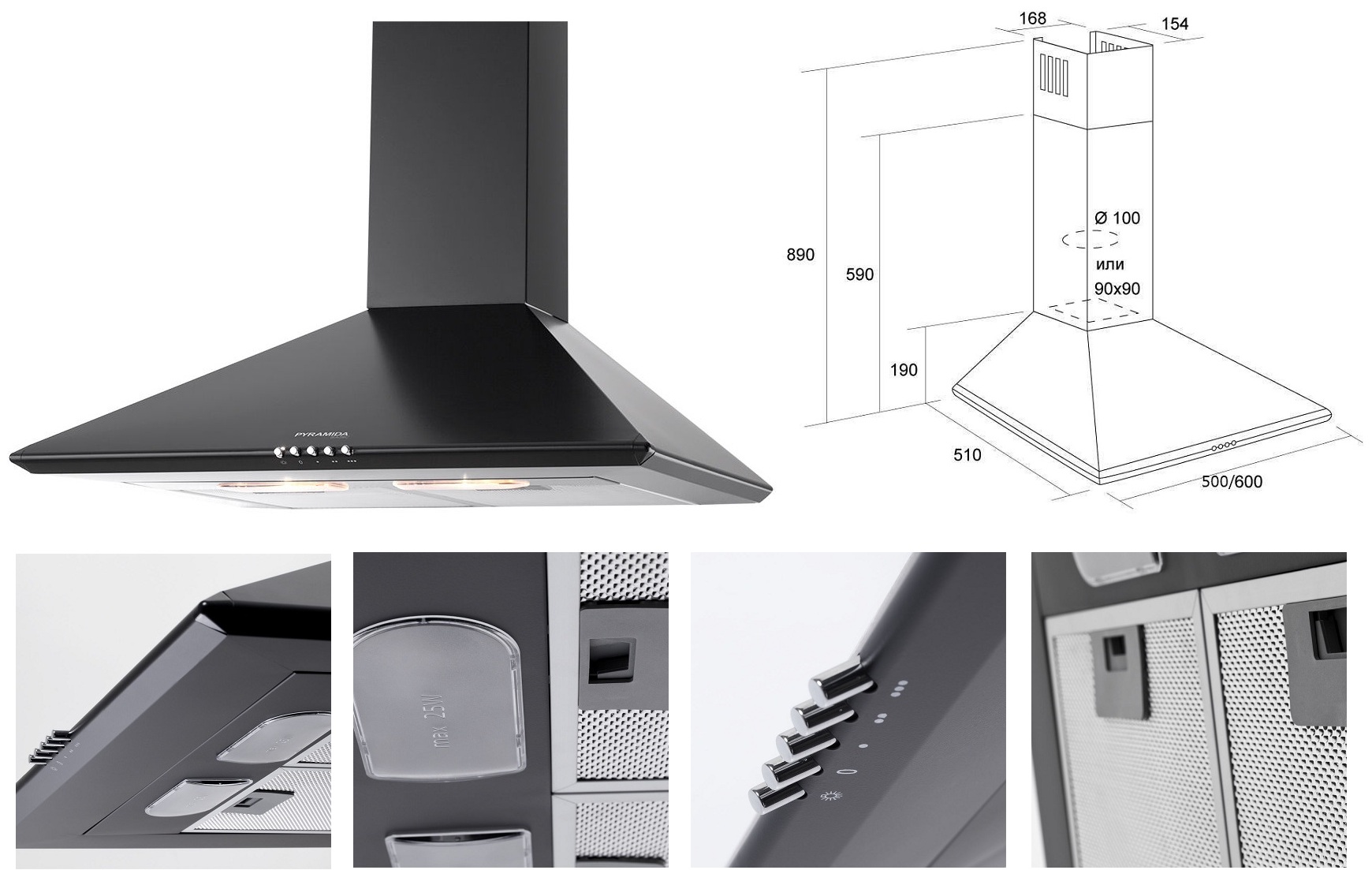 Вытяжка Pyramida CASA 60K BLACK Чёрный