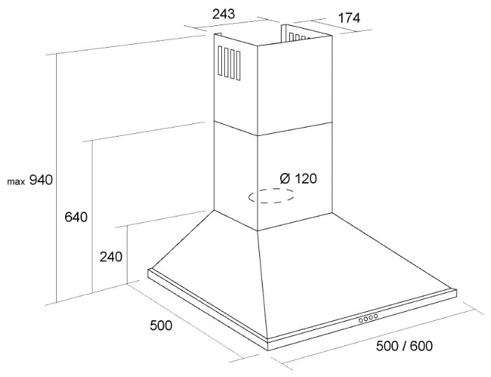 - Диаметр патрубка воздуховода: 120 мм
