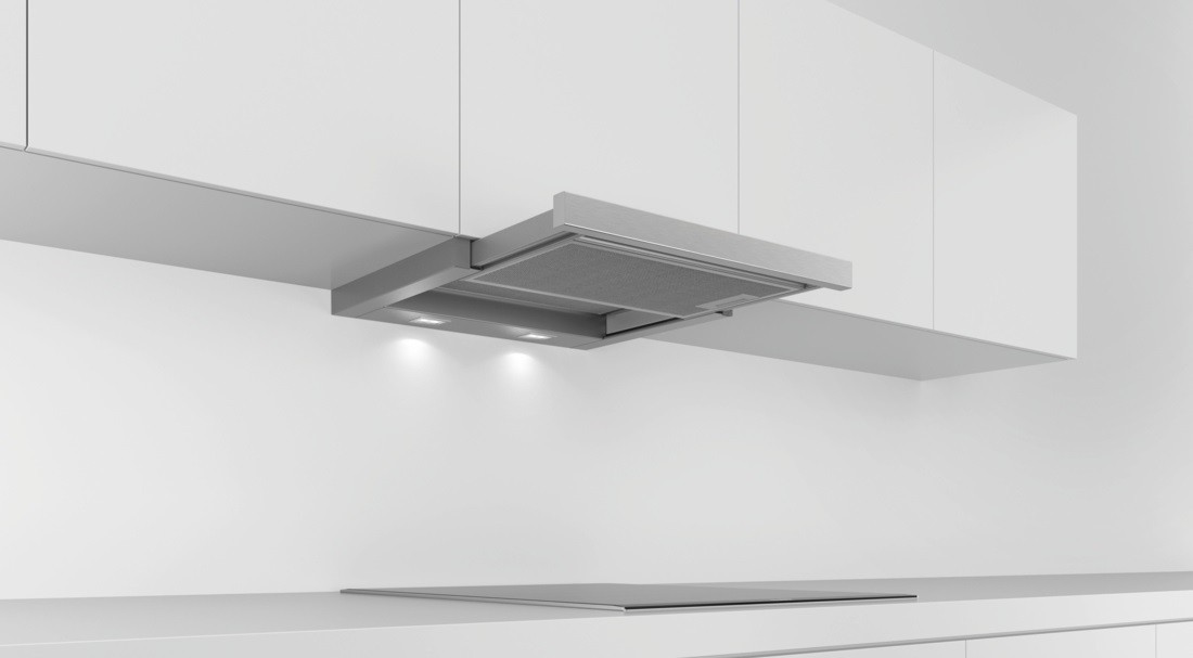 Выдвижной экран с возможностью установки декоративной панели из мебельного фасада или металла.