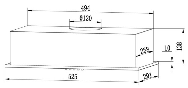 форм-фактор: встраиваемая, ширина: 52.50 см, глубина: 29.10 см, режимы работы: отвод, место встраивания: в шкаф, максимальная производительность: 600 м³/час, фильтр: жировой, тип управления: механическое, максимальный уровень шума: 50 дБ, ширина встраивания: 60 см, мощность двигателя: 83 Вт