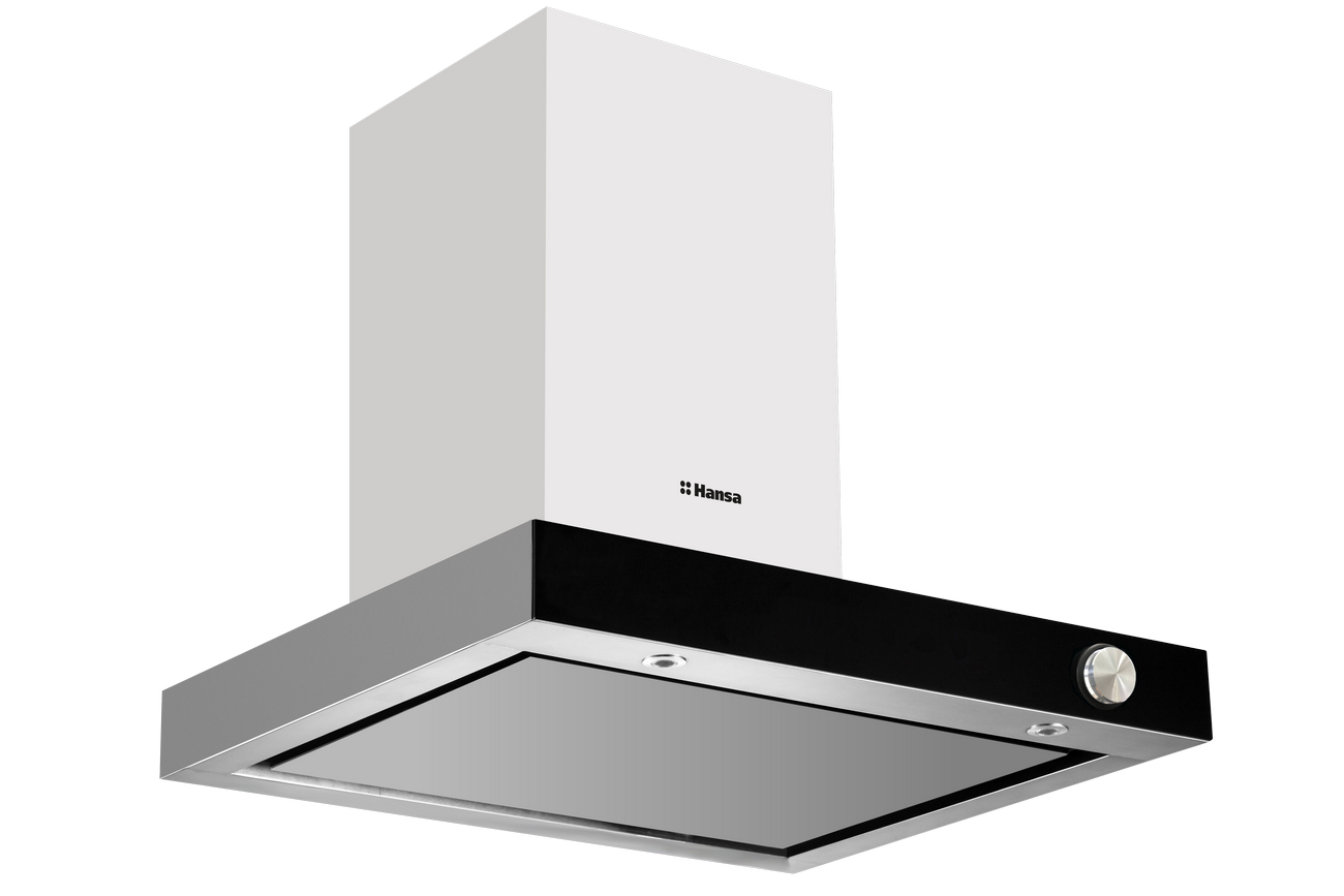 Вытяжка HANSA/ Каминная вытяжка, 60 см, мощность турбины 700м3/ч, максимальная производительность 555 м3/ч, возможность работы в режиме отвода и рециркуляции, 1 мотор, подсветка LED 2*2Вт, минимальный уровень шума 57Дб, управление поворотным переключателем, 4 режима работы, габариты (ВхШхГ)57-105х60х50 см, цвет – нержавеющая сталь черное стекло