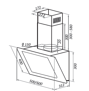 наклонная; монтируется к стене; отвод / циркуляция; макс. производительность 650 куб. м/ч; ширина для установки 60 см; мощность 104 Вт; мощность двигателя 102 Вт; электронное управление; дисплей; периметриальное всасывание
