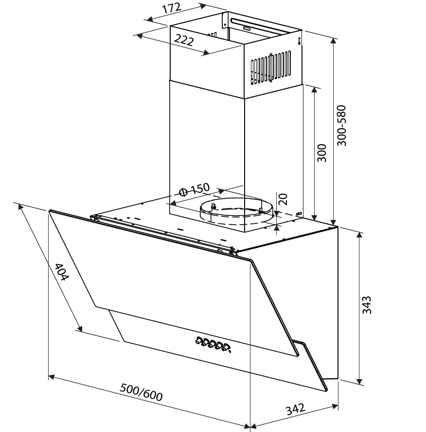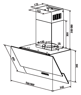 наклонная; монтируется к стене; отвод / циркуляция; макс. производительность 650 куб. м/ч; ширина для установки 60 см; мощность 104 Вт; мощность двигателя 102 Вт; электронное управление; дисплей; периметриальное всасывание