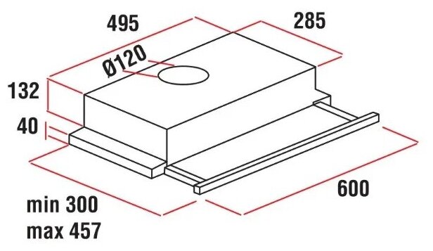 форм-фактор: встраиваемая, ширина: 60 см, глубина: 26.50 см, режимы работы: отвод / циркуляция, место встраивания: в шкаф, максимальная производительность: 700 м³/час, тип установки: пристенная, фильтр: жировой, тип управления: механическое, тип освещения: светодиодное, максимальный уровень шума: 40 дБ, ширина встраивания: 60 см, диаметр патрубка воздуховода: 120 мм, мощность двигателя: 100 Вт, тип встраивания в шкаф: выдвижная, потребляемая мощность: 100 Вт, дополнительные функции: интенсивный режим, особенности конструкции: антивозвратный клапан