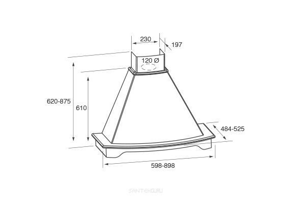 монтируется к стене; отвод / циркуляция; макс. производительность 990 куб. м/ч; ширина для установки 60 см; мощность 160 Вт; механическое управление
