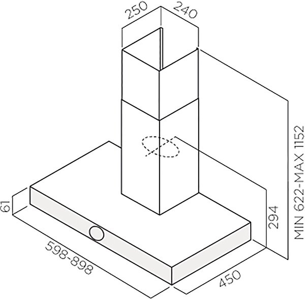 монтируется к стене; отвод / циркуляция; макс. производительность 1200 куб. м/ч; ширина для установки 90 см; мощность 255 Вт; электронное управление