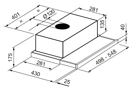 встраивается в навесной шкафчик; отвод / циркуляция; макс. производительность 550 куб. м/ч; ширина для установки 50 см; мощность 250 Вт; механическое управление; тихий двигатель