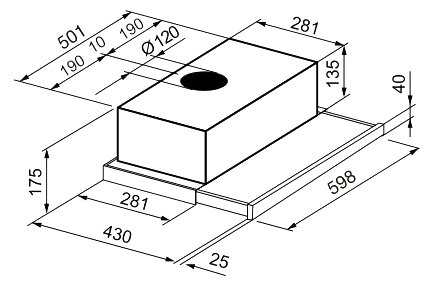 встраивается в навесной шкафчик; отвод / циркуляция; макс. производительность 550 куб. м/ч; ширина для установки 60 см; мощность 250 Вт; механическое управление; тихий двигатель