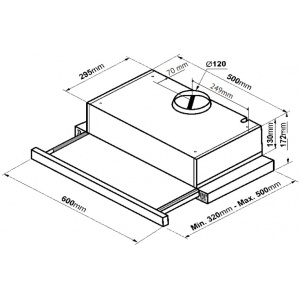 встраивается в навесной шкафчик; отвод / циркуляция; макс. производительность 650 куб. м/ч; ширина для установки 60 см; мощность 200 Вт; механическое управление; тихий двигатель