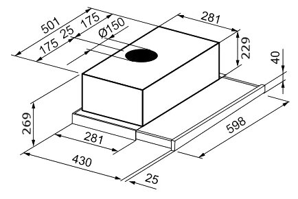 выдвижная, встраивается в навесной шкафчик; отвод / циркуляция; макс. производительность 790 куб. м/ч; ширина для установки 60 см; мощность 250 Вт; электронное управление; тихий двигатель; дисплей
