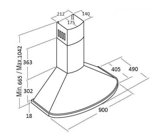 монтируется к стене; отвод / циркуляция; макс. производительность 800 куб. м/ч; ширина для установки 90 см; механическое управление; тихий двигатель