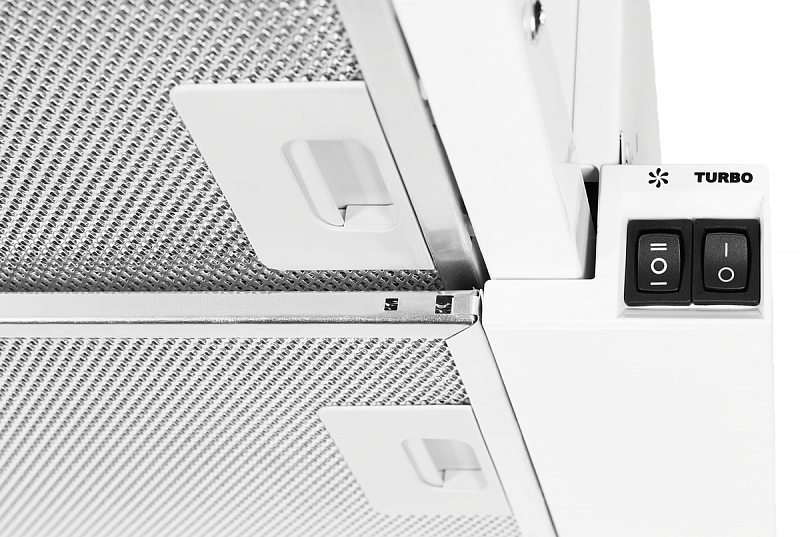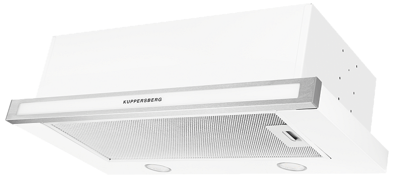 Встраиваемая вытяжка, ширина 60 см, отвод/рециркуляция, 550 м3/час, механическое управление, 3 скорости, светодиодное освещение 2х3 Вт, металлические жироулавливающие фильтры, угольный фильтр KFM1 (опция), цвет белый/панель стекло