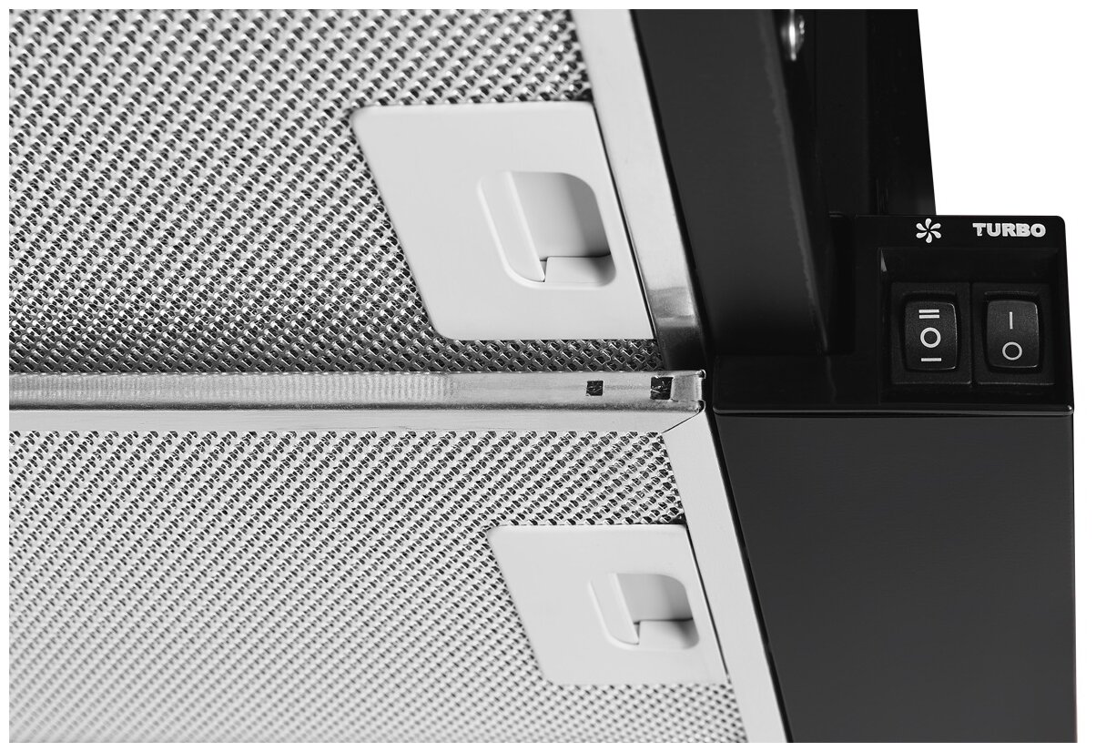 выдвижная, встраивается в навесной шкафчик; отвод / циркуляция; макс. производительность 550 куб. м/ч; мощность двигателя 120 Вт; механическое управление