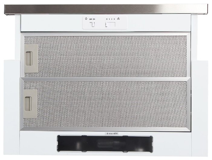встраивается в навесной шкафчик; отвод / циркуляция; макс. производительность 420 куб. м/ч; ширина для установки 60 см; мощность 165 Вт; механическое управление