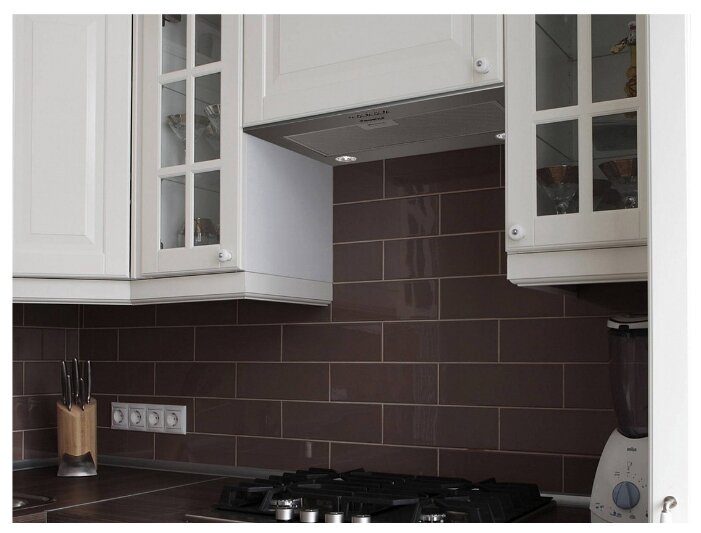 Вытяжка встраивается в навесной шкафчик, более менее тихо работает даже на максимальной мощности. 4 June 2020