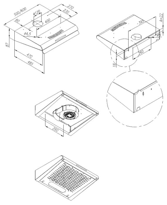 простота замены фильтров, есть подсветка варочного пространства, несколько режимов работы по мощности вытяжки, компактна, хорошо смотрится.