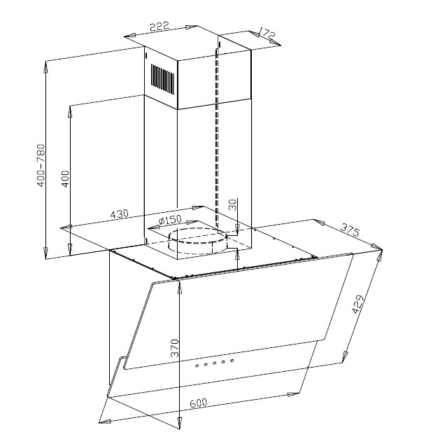 наклонная; монтируется к стене; отвод / циркуляция; макс. производительность 1050 куб. м/ч; ширина для установки 60 см; мощность 192 Вт; электронное управление; дисплей