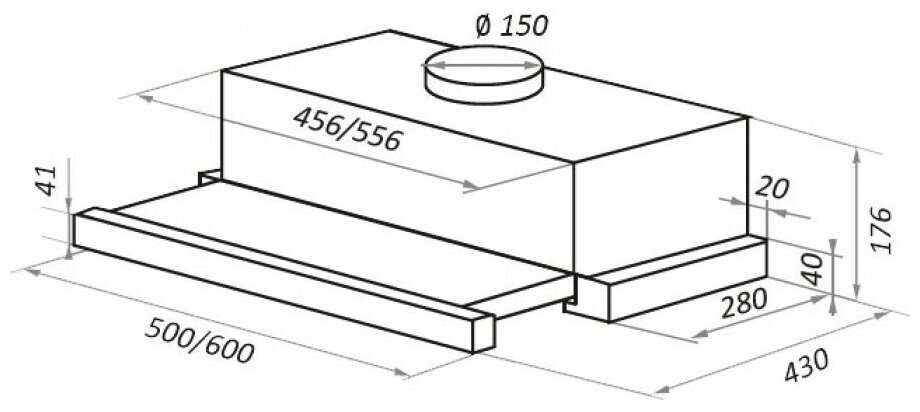 выдвижная, встраивается в навесной шкафчик; отвод / циркуляция; макс. производительность 830 куб. м/ч; ширина для установки 60 см; мощность 102 Вт; мощность двигателя 100 Вт; механическое управление; тихий двигатель