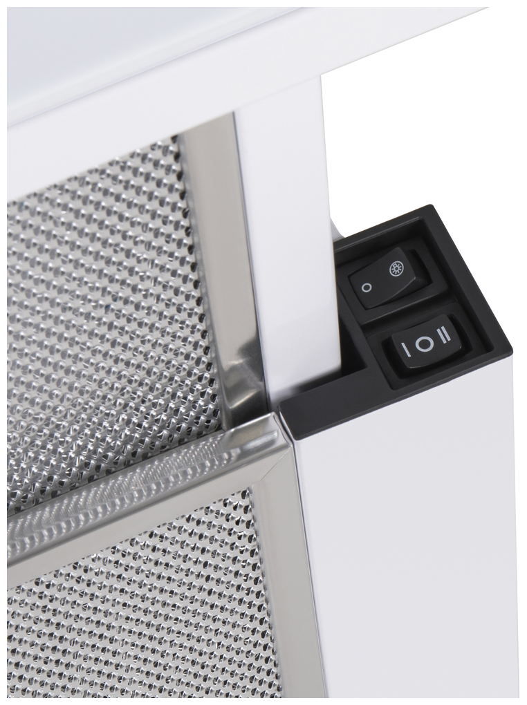 встраивается в навесной шкафчик; отвод / циркуляция; макс. производительность 850 куб. м/ч; ширина для установки 60 см; мощность 102 Вт; мощность двигателя 100 Вт; механическое управление; тихий двигатель