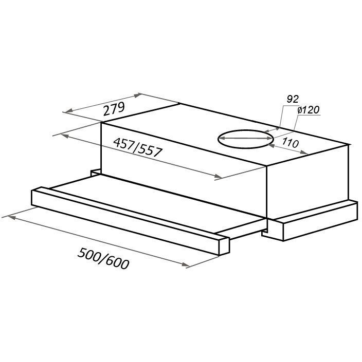 Основные Характеристики: ; Режимы работы отвод/циркуляция; Управление кулисные переключатели; Регулировка уровня мощности есть; Кол-во регулировок мощности 2; Количество двигателей одномоторная; Диаметр штуцера для отвода воздуха 120 мм; Максимальная Производитель ность 520 м3/час; Уровень шума 56 дБ; Тип фильтра алюминиевый жироулавливающий; Мощность подключения 102 Вт; Особенности; Встроенная подсветка есть; Тип подсветки светодиодное; Мощность подсветки 2 х 1 Вт; Корпус вытяжки; Цвет белый; Ширина вытяжки 500 мм; Глубина вытяжки 279 мм; Ширина секции для встраивания 457 мм; Глубина секции для встраивания 279 мм