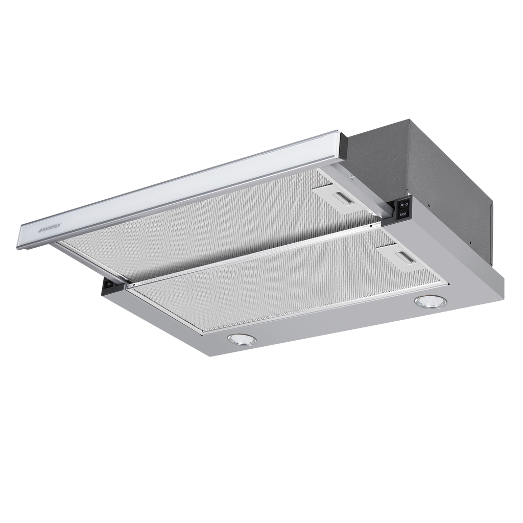 Технические Характеристики: ; Установка; встраиваемая в шкаф; Тип встраивания в шкаф; выдвижная; Количество двигателей; 1; Количество скоростей; 3; Потребляемая мощность; 130 Вт; Режим работы; отвод / циркуляция воздуха; Максимальная Производитель ность; 620 м³/час; Фильтр; жировой; Максимальный уровень шума; 56 дБ; Тип управления; механическое; Тип освещения; галогенная лампа; Материал корпуса; металл; Материал окантовки/панели; стекло; Особенности; Элементы управления; кнопочное; Дополнительная информация; cъемное фасадное стекло, возможность замены на стекло с другим цветом, в комплекте: алюминиевый фильтр, переходник; количество ламп освещения: 2; мощность каждой лампы: 20 Вт; Габариты; Размеры (ШхГ); 60х29 см; Минимальная высота; 18 см; Ширина встраивания; 60 см; Диаметр патрубка воздуховода; 120 мм