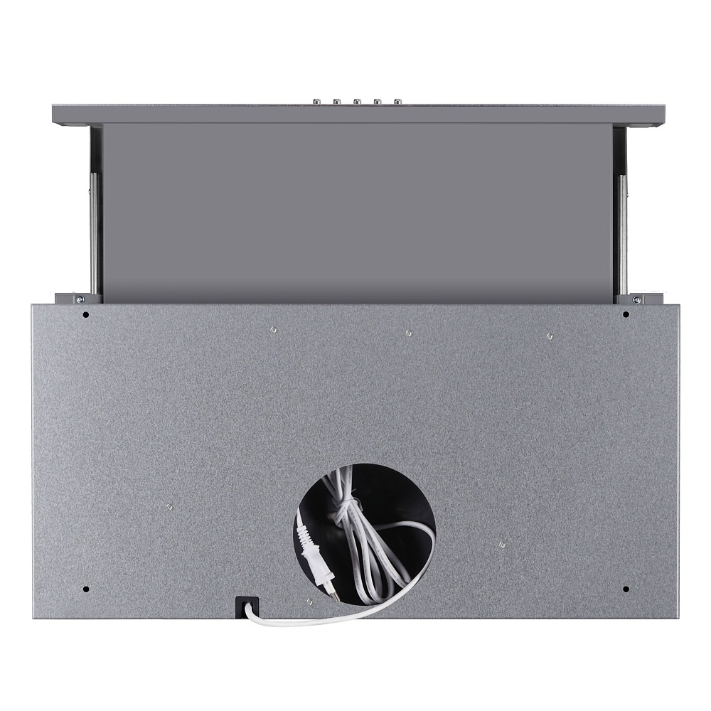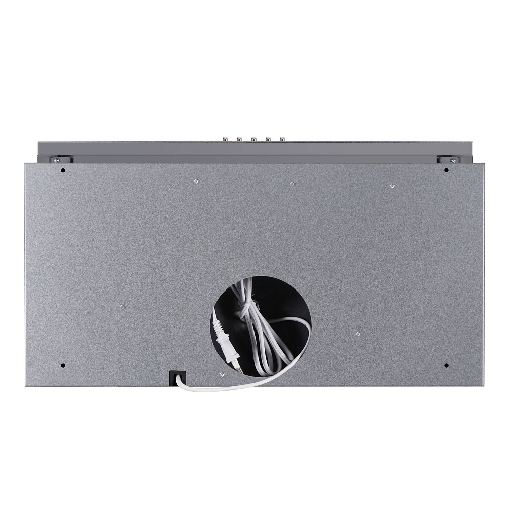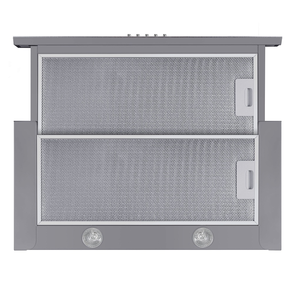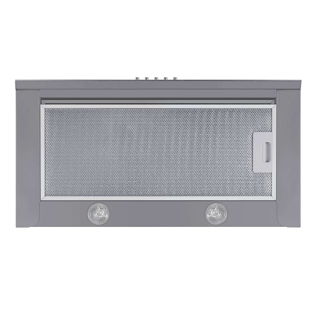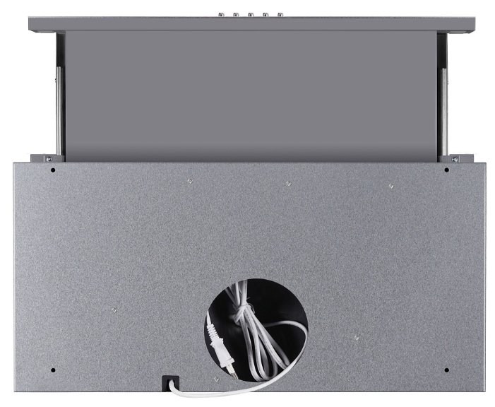 выдвижная, встраивается в навесной шкафчик; отвод / циркуляция; макс. производительность 750 куб. м/ч; ширина для установки 60 см; мощность 220 Вт; механическое управление; тихий двигатель