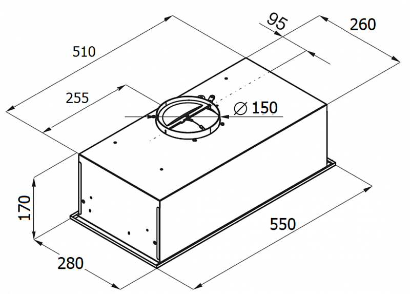- Диаметр патрубка воздуховода: 150 мм
