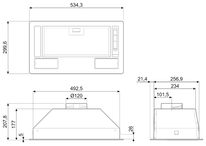 полновстраиваемая в навесной шкафчик; отвод / циркуляция; макс. производительность 368 куб. м/ч; ширина для установки 49.25 см; мощность 146 Вт; мощность двигателя 140 Вт