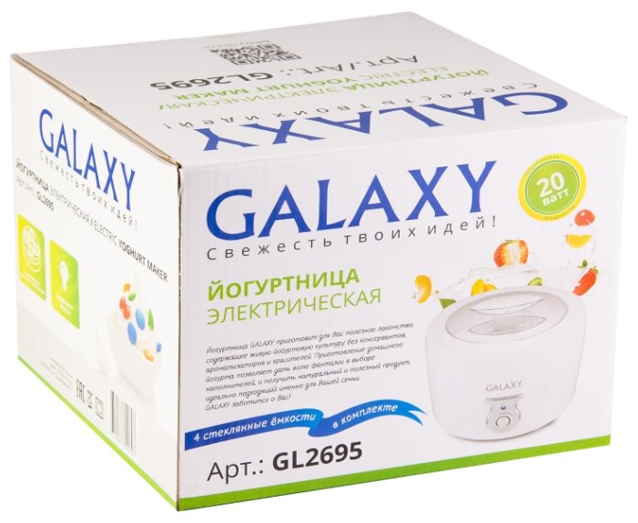 йогуртница с механическим управлением; пластиковый корпус; материал баночек: стекло; количество баночек: 4; индикатор работы