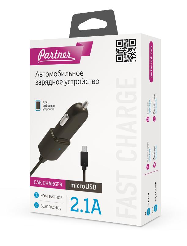 Зарядное устройство от прикуривателя 12-24в Partner 034137 microUSB 2.1A