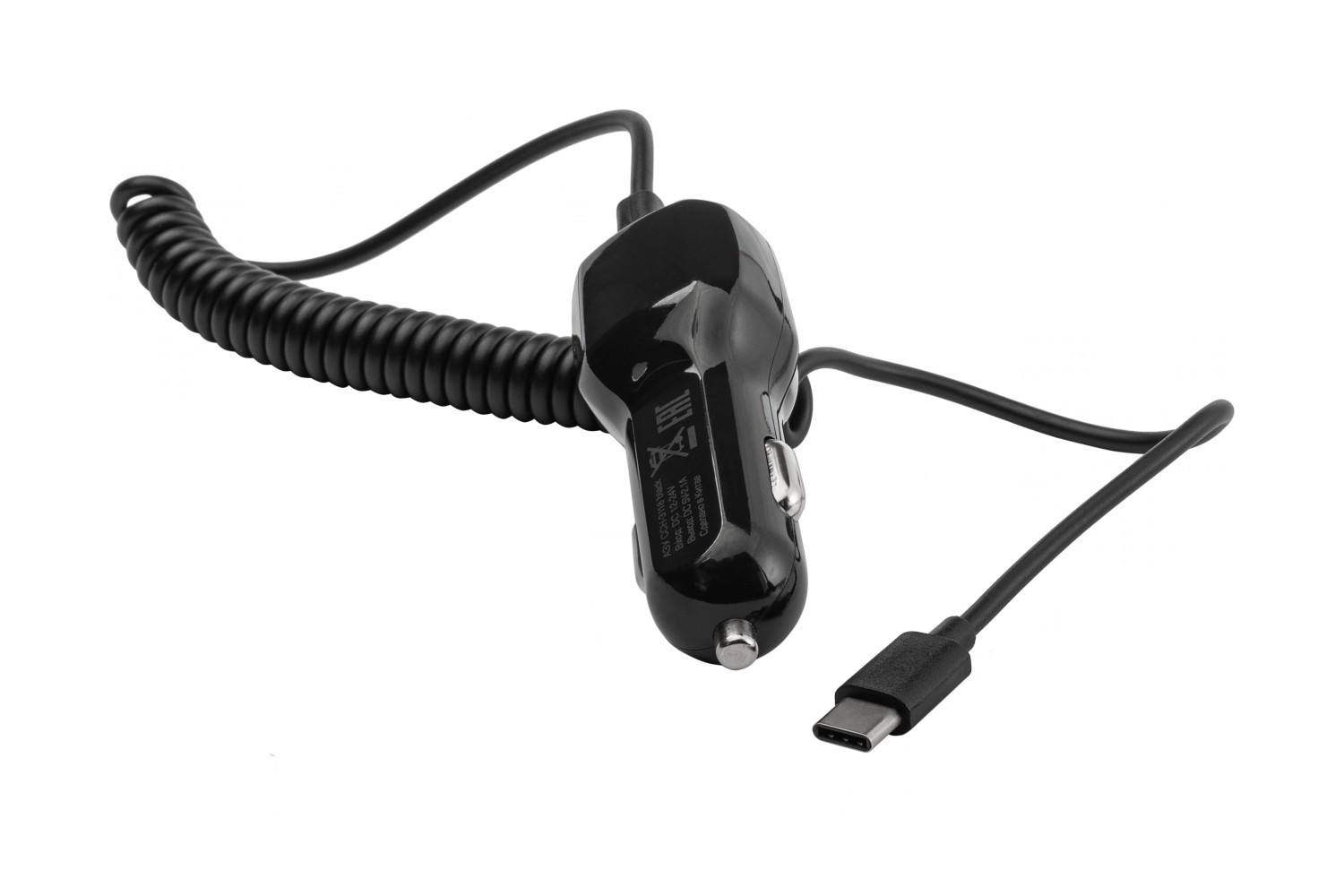 АЗУ. Автомобильное зарядное устройство; Тип подключения: DC 12-24V; Количество USB портов: 1 Type-A + кабель Type-C; Максимальный выходной ток (суммарно): 2.1 A