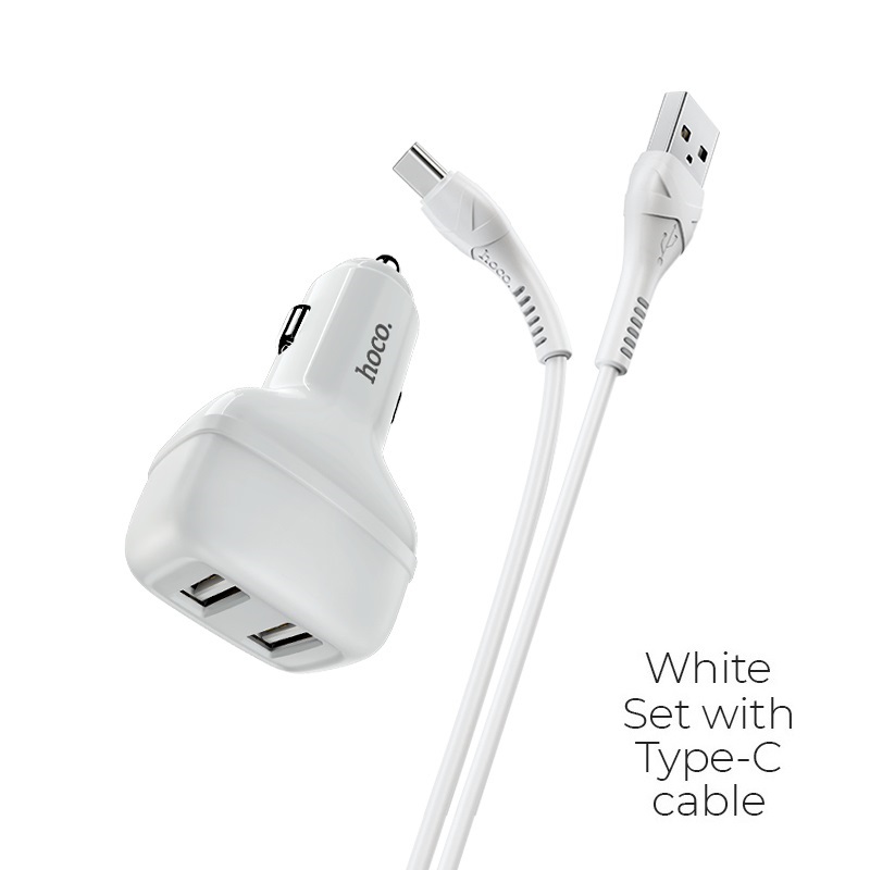Основные характеристики Производитель HOCO Тип Автомобильное зарядное устройство Выходная мощностье 2.4 А Количество USB-входов 2 Материал Пластик Цвет Белый Кабель в комплекте Есть, Type-C, 1м