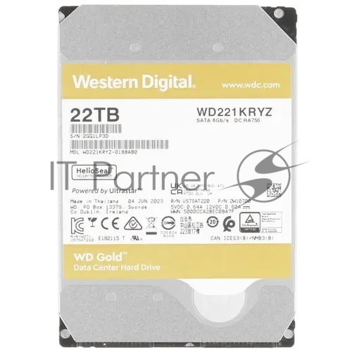 Жесткий диск Western Digital GOLD WD221KRYZ 22TB 3.5" 7200 RPM 512MB 512e SATA-III